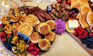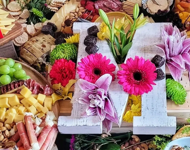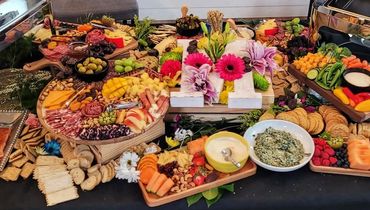 Layered Grazing Tables will be assembled utilizing a stylish array of serving platters, boards, boxes, utensils & accessories along with greenery and other types of florals to match your theme or aesthetic. Layered grazing is a true feast for the eyes and your taste buds